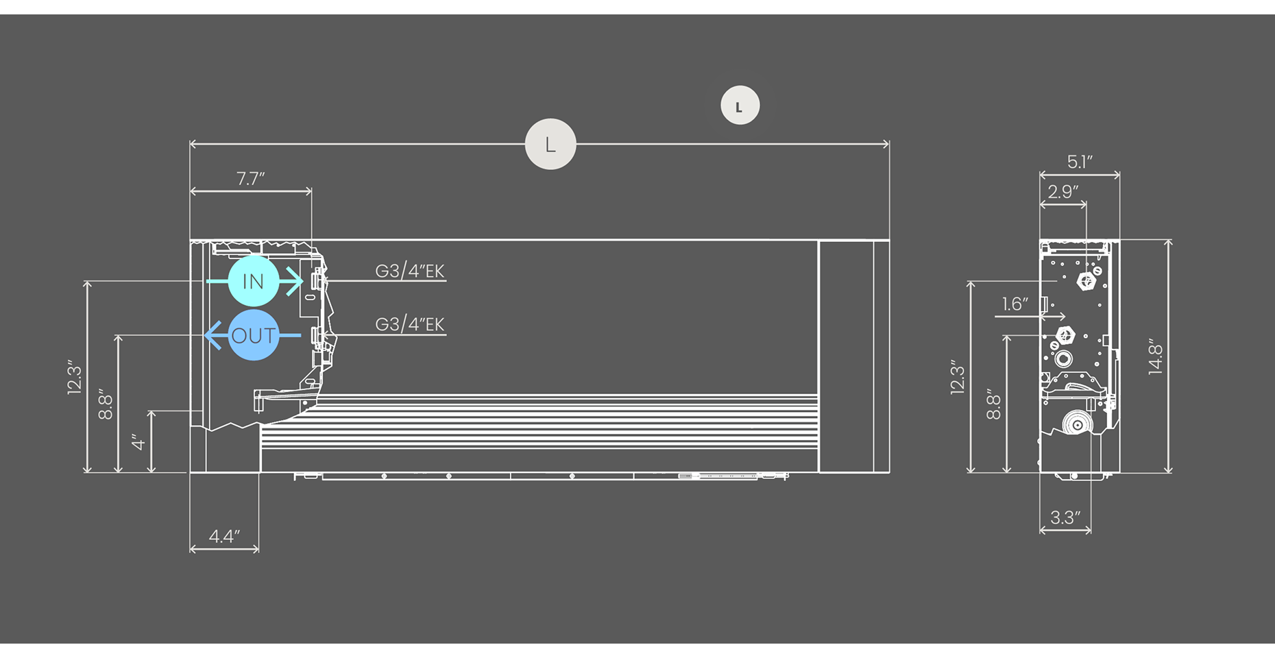 With clean lines and a slim design, the OSMO Console fan coil is characterized by a paintable all-metal cabinet, measuring just over five inches deep. These features are highly desirable for building owners, specifying engineers, and contractors. The fan coil incorporates DC inverter technology, ensuring super quiet and efficient operations. It is compatible with low-temperature generators, including heat pumps, condensing boilers, and integrated systems.