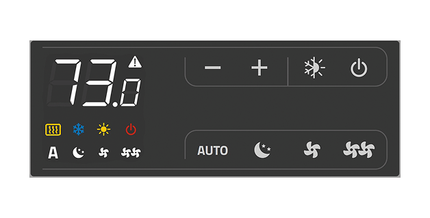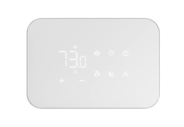 The integrated touch controller offers easy-to-use controls of mode, fan speed, set point and a dimmable screen for nighttime on all OSMO console units. This controller is only available for console and wall mounted units.