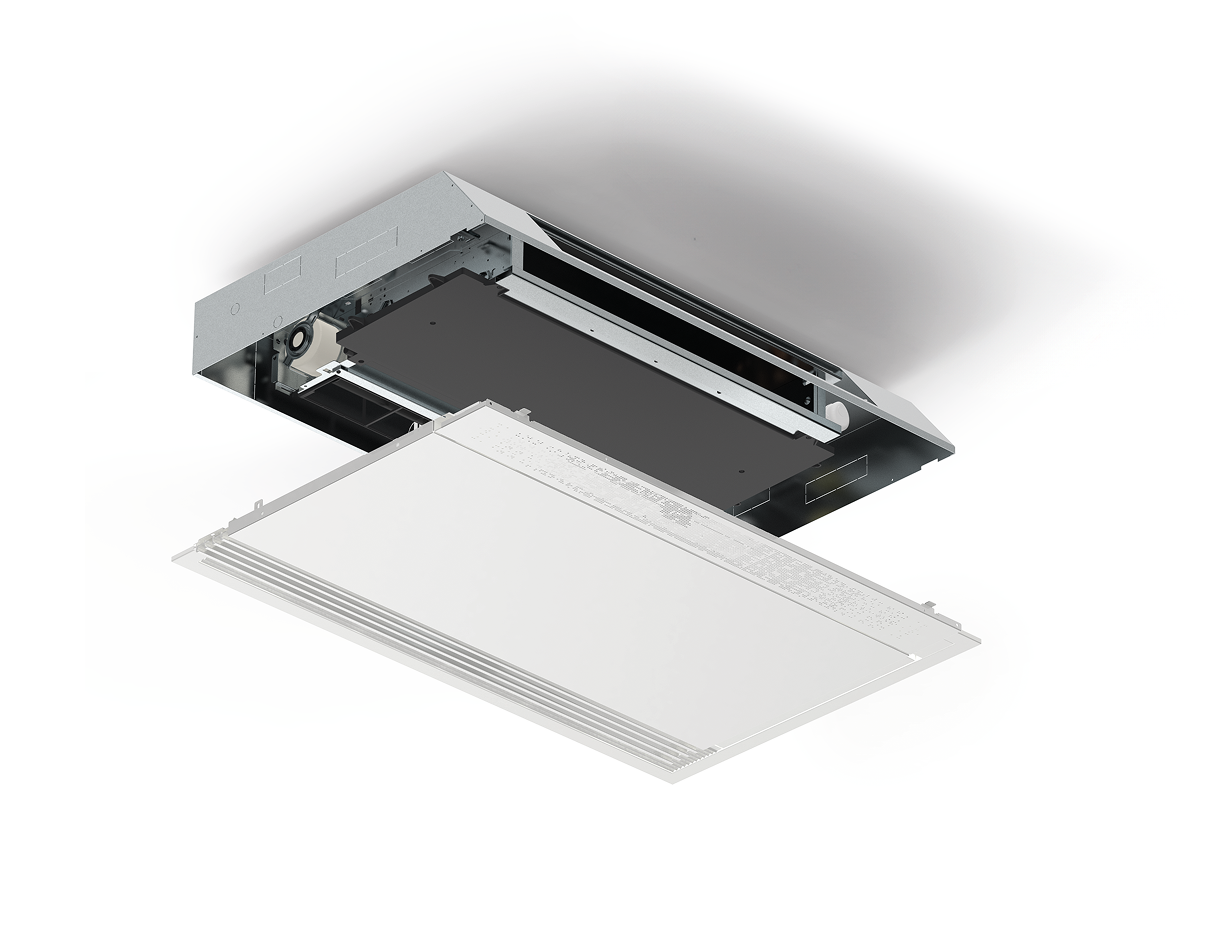 - Fully recessed into a false ceiling