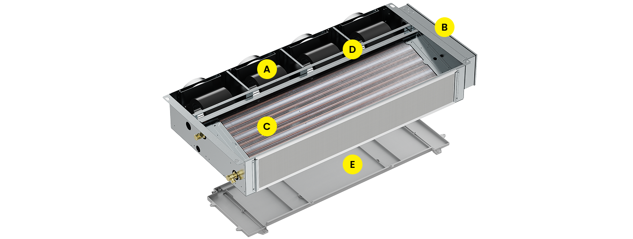 Achieving and maintaining the desired temperature swiftly and silently through continuous automatic modulation of the fan, the OSMO Horizontal Ducted fan coil provides efficient and unobtrusive heating and cooling.