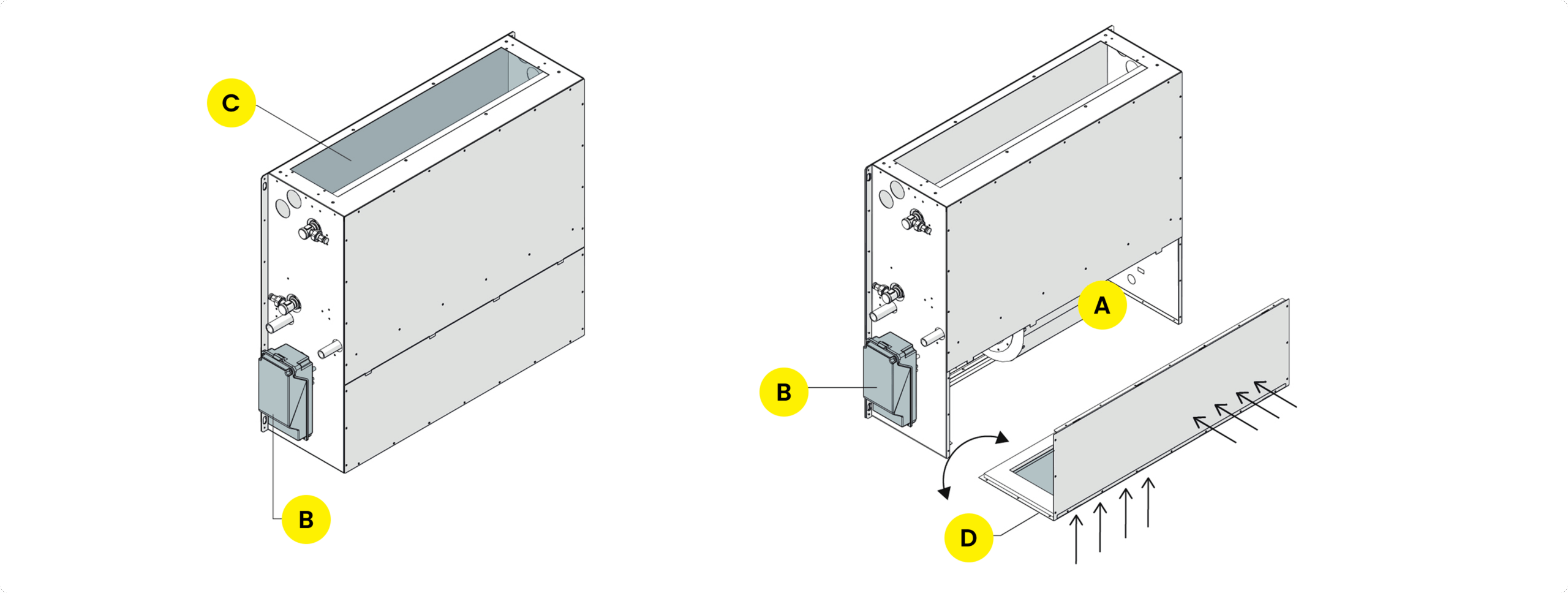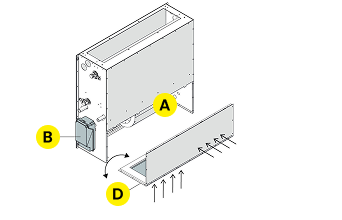 The unit is equipped with a centrifugal fan and low consumption DC inverter motor and integrated control.